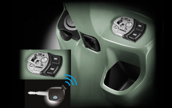 ส่งสัญญาณบอกตำแหน่งรถและเปิดช่องกุญแจอัตโนมัติ พร้อมไฟเรืองแสง สะดวกสบายด้วยปุ่มกดเปิดเบาะที่นั่งและเปิดฝาถังน้ำมัน