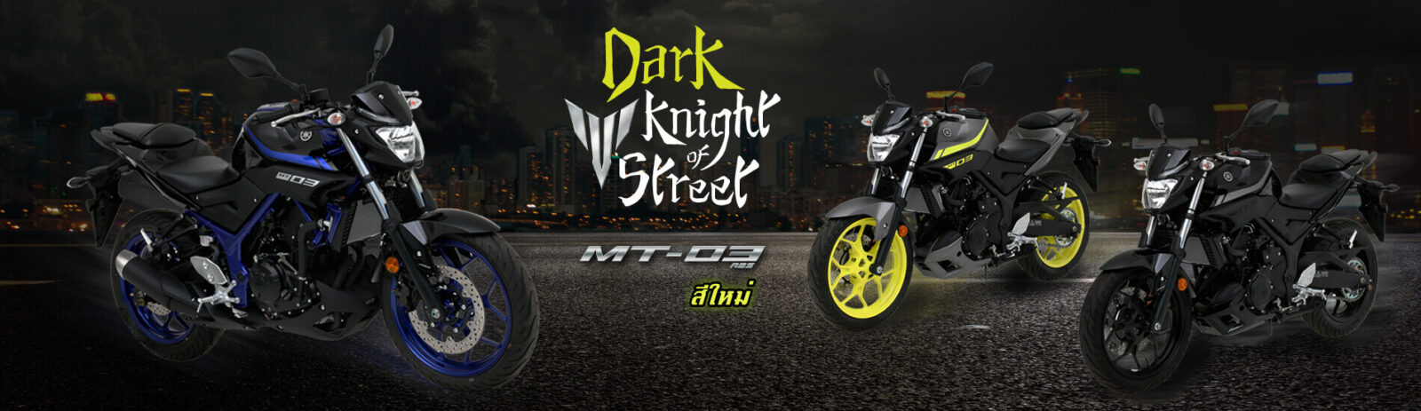 ยามาฮ่า MT-03 เฉดเข้มหล่อร้าย สัญชาตญาณตระกูล MT ซีรีส์ พบสีสันใหม่ของ Sport Naked พันธุ์ดุ ขุมกำลัง 321 ซีซี รูปลักษณ์โฉบเฉี่ยว ดีไซน์ตัวรถแบบ X-Movement เน้นความแรงและความคล่องตัว น้ำหนักเบา เหมาะกับการขับขี่ในเมือง ให้อารมณ์การควบคุมที่ง่ายและสนุกในแบบ Master of Torque ที่ให้ความเร้าใจใหม่สไตล์ MT-Series