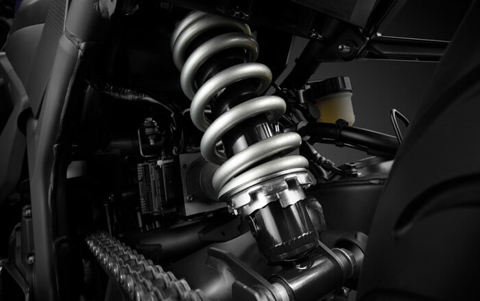 ระบบกันสะเทือนหลังแบบโมโนโช้ค ประสานการทำงานกับช่วงล่างได้ดีกว่าโช้คปกติ น้ำหนักเบา รักษาสมดุลได้ดีตลอดการขับขี่